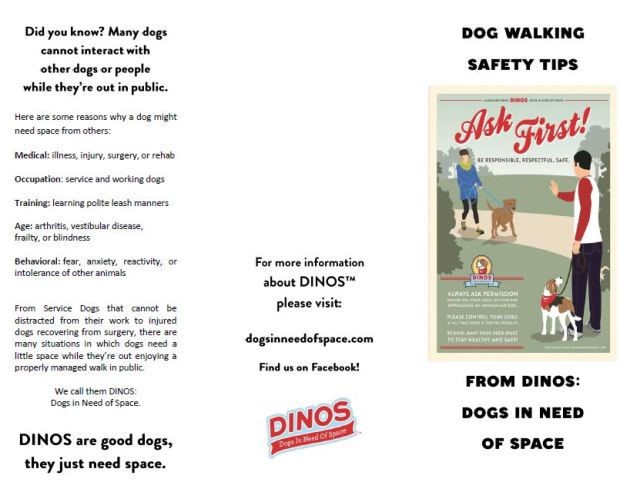 …and give them general tips for safe, polite dog walking so that all of us (DINOS or not) can enjoy being out in public with our dogs: