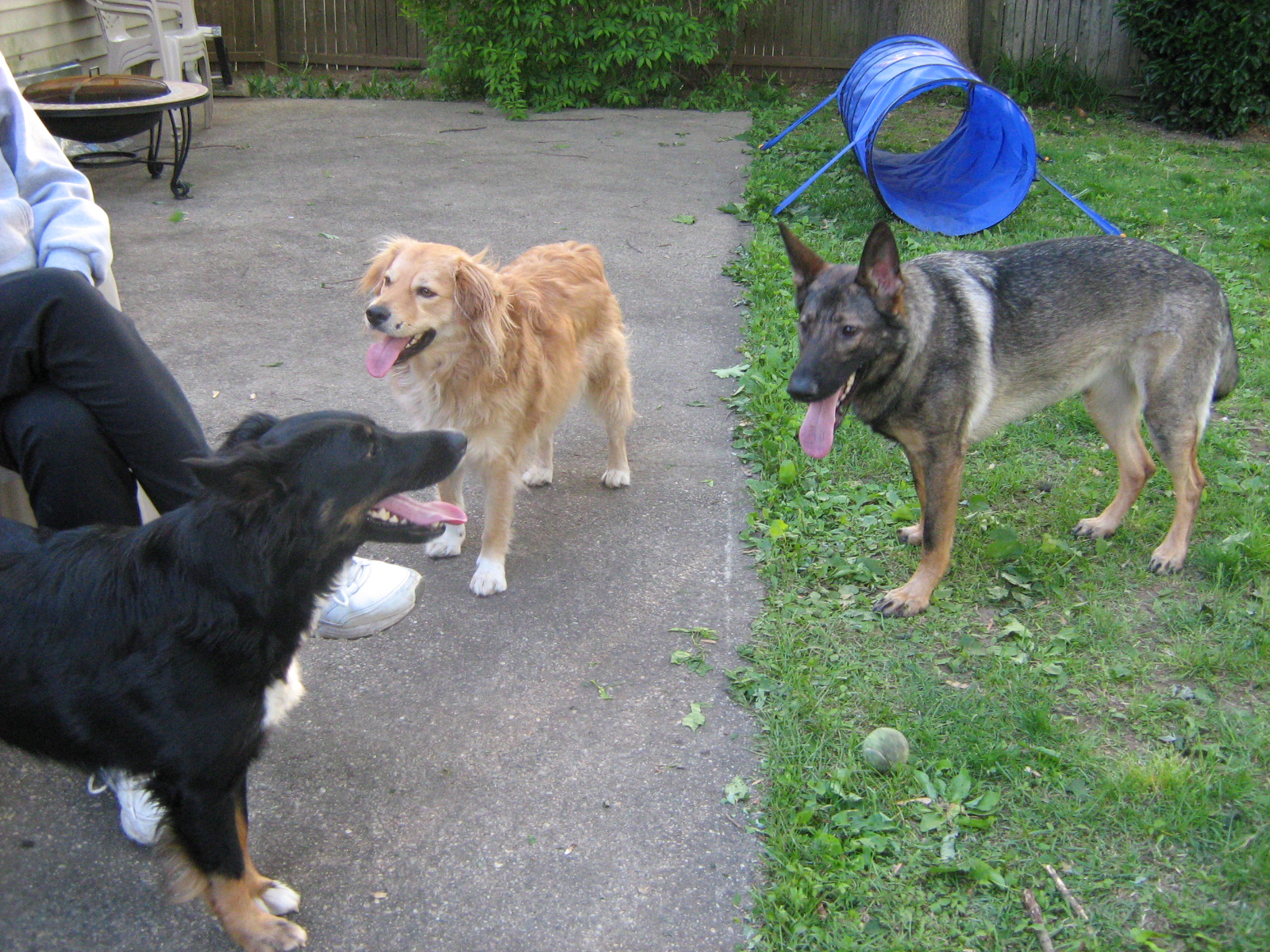 When the next dog appeared, I guided us to a stop to make some room for them to pass. I held tight to the leash, waiting for you to see the other dog and react.