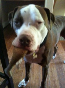 In the nearly three years we’ve lived with Shanoa, she’s been transformed. My shy, frightened puppy has become a (relatively) normal dog. The transformation, for us, is nothing short of miraculous. For the first year and a half that we lived with her, Shanoa never wagged her tail. I will never forget the first tentative sweeps of her cute little nub as we played outside. Her nub wags almost non-stop, now. The most important lesson she’s learned is that she can trust us to protect her.