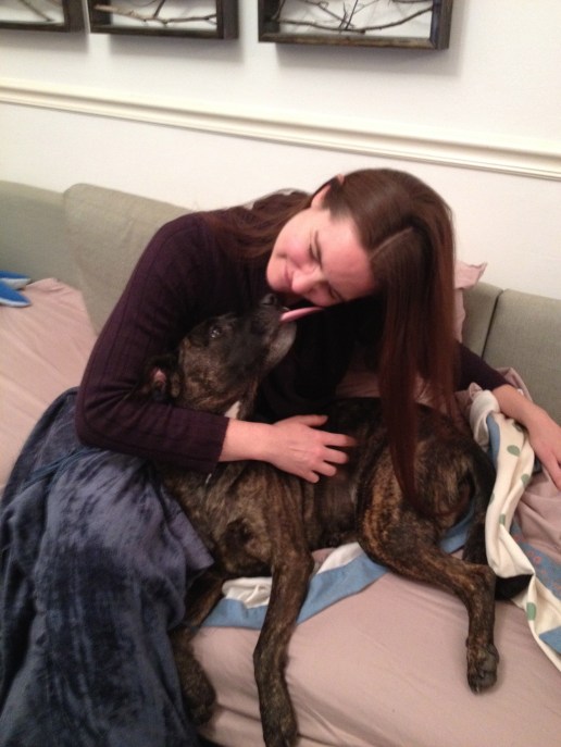 And when we get home, she makes sure to get as close to me as she possibly can, occupying the same space as I am if at all possible, as we relax and watch some TV. She snuggles with me as much as possible. She has even figured out how to turn on the electric blanket and get underneath it to stay warm in the Minnesota winter. Because of her, I’ve gotten involved in our local Doberman rescue, and have been able to help out volunteers with foster dogs who are DINOS.